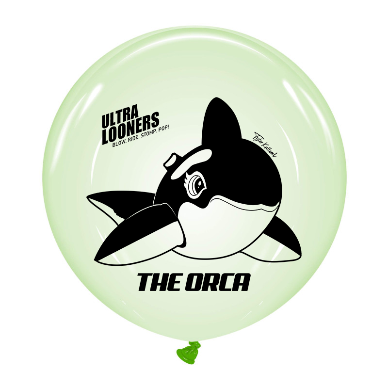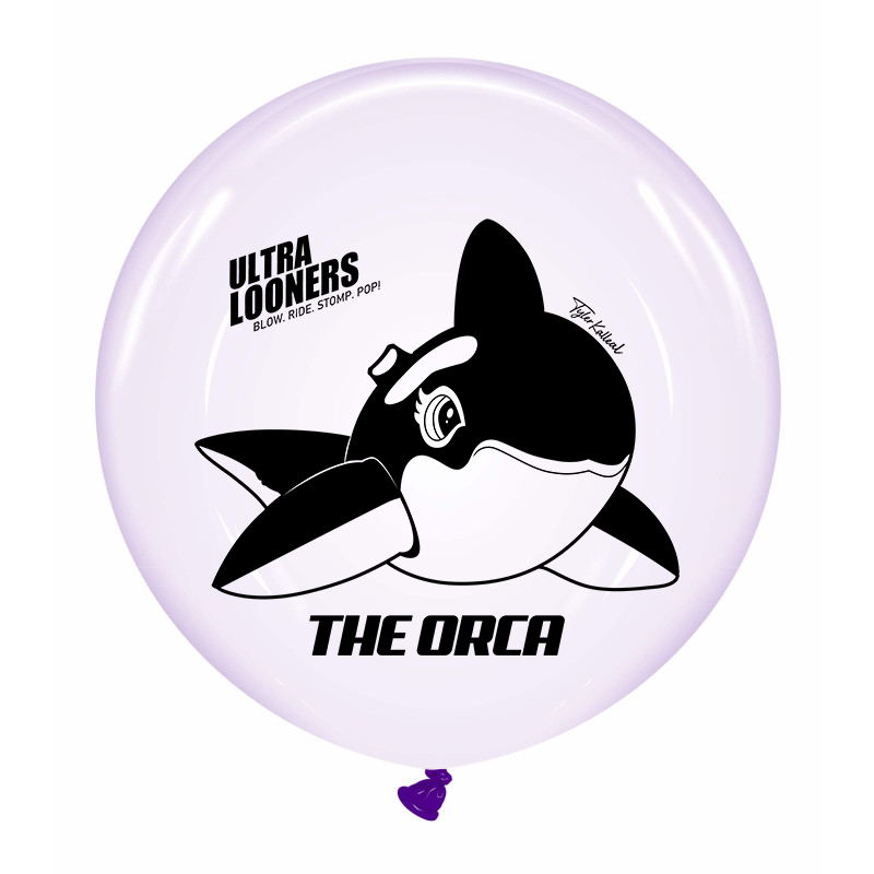 Dieser hochwertige Cattex 24 Zoll Soap Luftballon besticht durch sein besonderes Design: ein detailreicher Orca-Druck, entworfen von Tyler Kalleal als Hommage an ein berühmtes Inflatable.